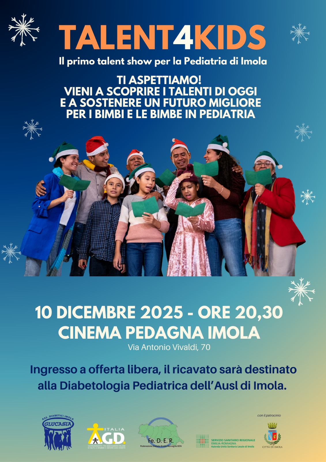 Si susseguiranno talenti giovani e meno giovani, che tutti insieme si esibiranno con la voglia di divertirsi con lo scopo comune di raccogliere fondi per progetti educativi per bimbi con diabete.