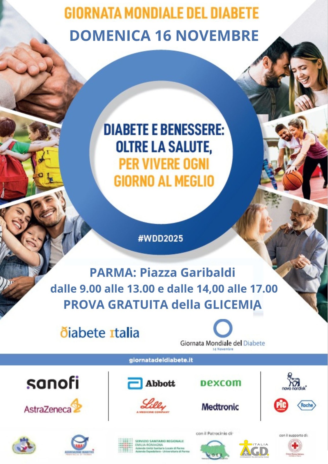 AGD PARMA ODV in collaborazione con l’Associazione Diabetici della Provincia di Parma e i medici diabetologi dell’AOU e dell’AUSL di Parma e con il supporto tecnico della CROCE ROSSA di Parma sarà presente a Parma, in Piazza Garibaldi ππππππππ ππ ππππππππ in occasione della GIORNATA MONDIALE DEL DIABETE.